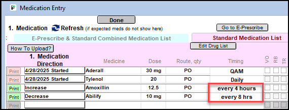 If the desired value is not in the medication list, you can free-text an entry to the corresponding dosage. Never leave one of the five fields (Medication Direction, Medicine, Dose, Route, and Timing) blank. For more information on how to edit the medication and dose for your group and future use, see our Editing Drug List Knowledge Base Article.