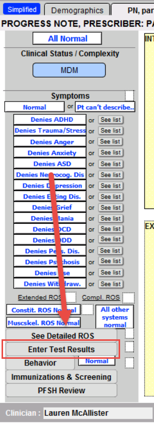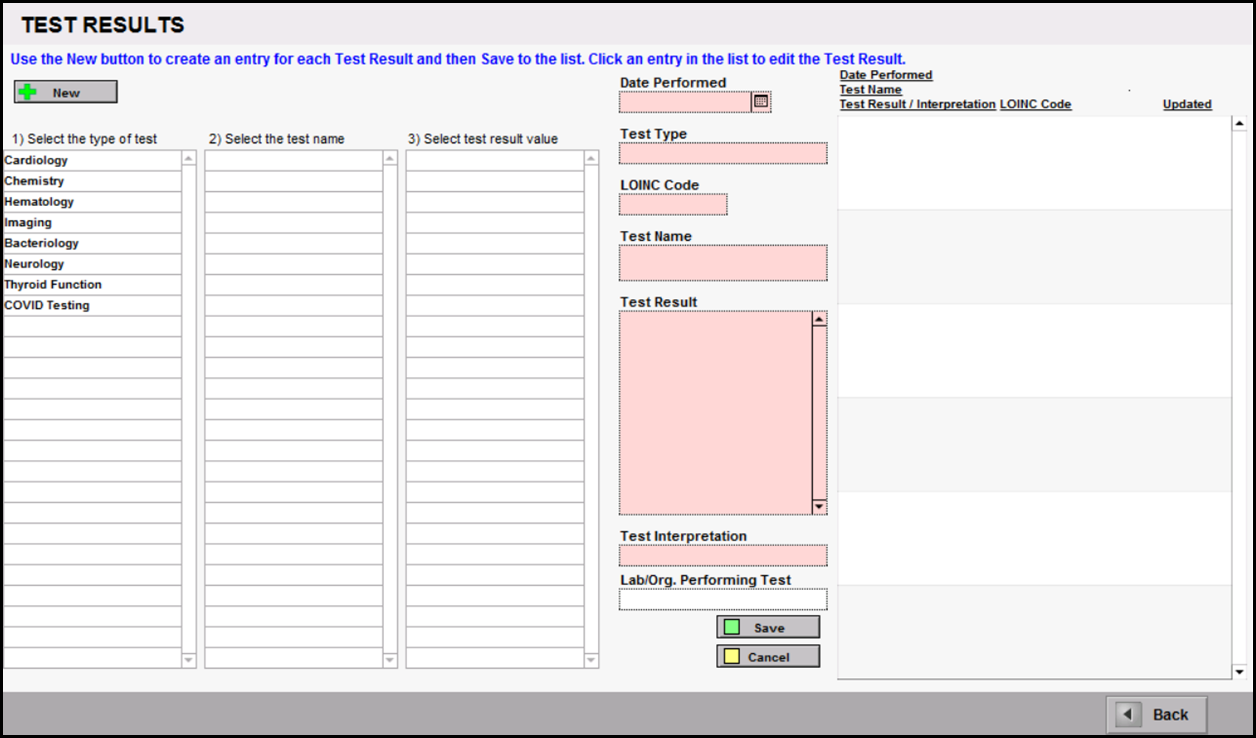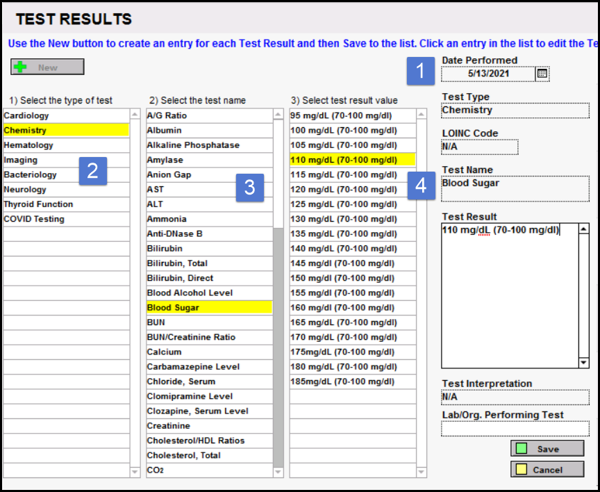 - Select the test result value (if shown) or you can type in the results in the Test Result field.