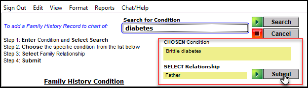 Additional family history entries can be made to note known conditions. ICANotes users can add these entries via the Complete Evaluation, or within Demographics (without creating a note).