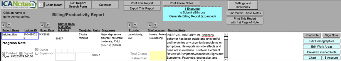 I get basic information from the first few columns including a check if the note is finished and signed by the owner of the note and/or supervisor.