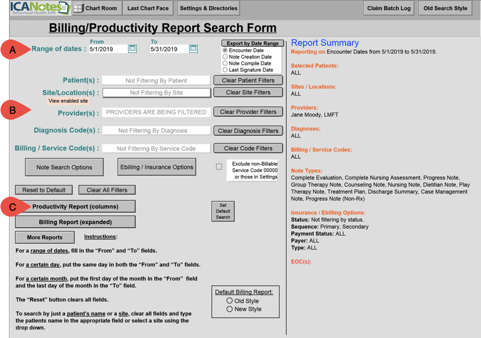 This knowledge base article will demonstrate how to pull up notes by a clinician within a certain timeframe.
