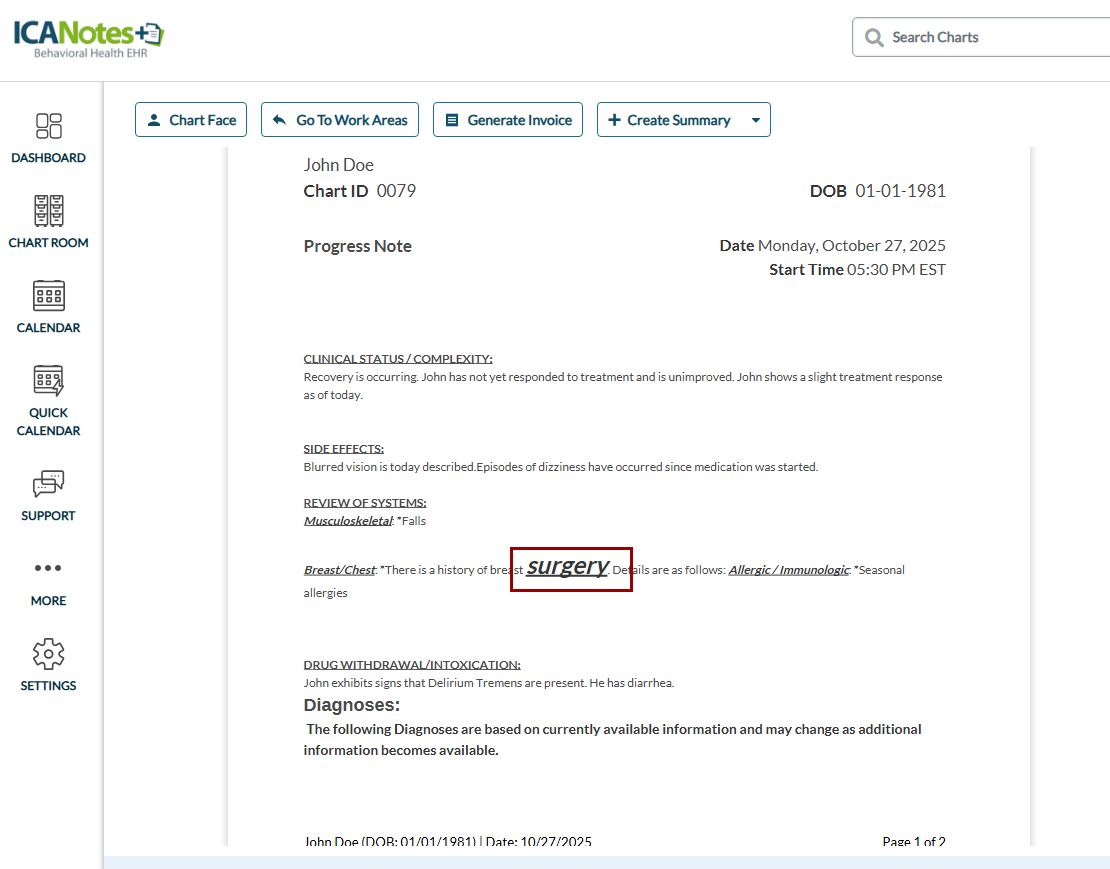 Overview ICANotes+ enables you to create a variety of note types. Once notes are created, they can be compiled and signed, with access provided on the Dashboard under categories such as In Progress Notes, Finished Notes, and Signed Notes. Quick Note ...