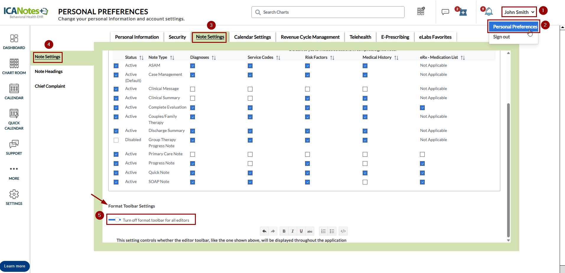 Overview This KB article includes the new features released in ICANotes+ version v5.15. Enhanced Roles & Permissions Feature With the enhanced Roles & Permissions feature, administrators now have greater control over user access to specific actions. ...