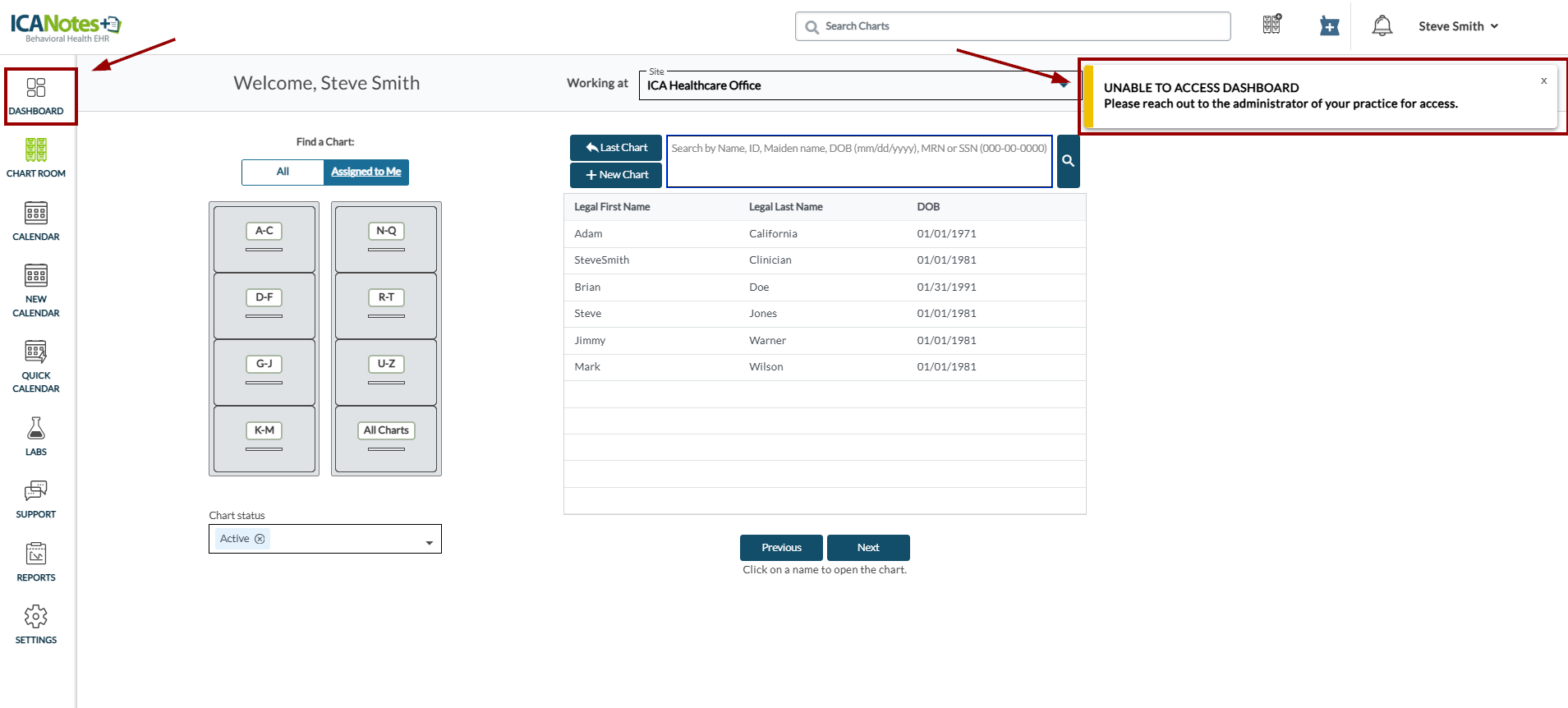 Users without this permission attempting to access the notes on the Dashboard will receive the following restriction message.