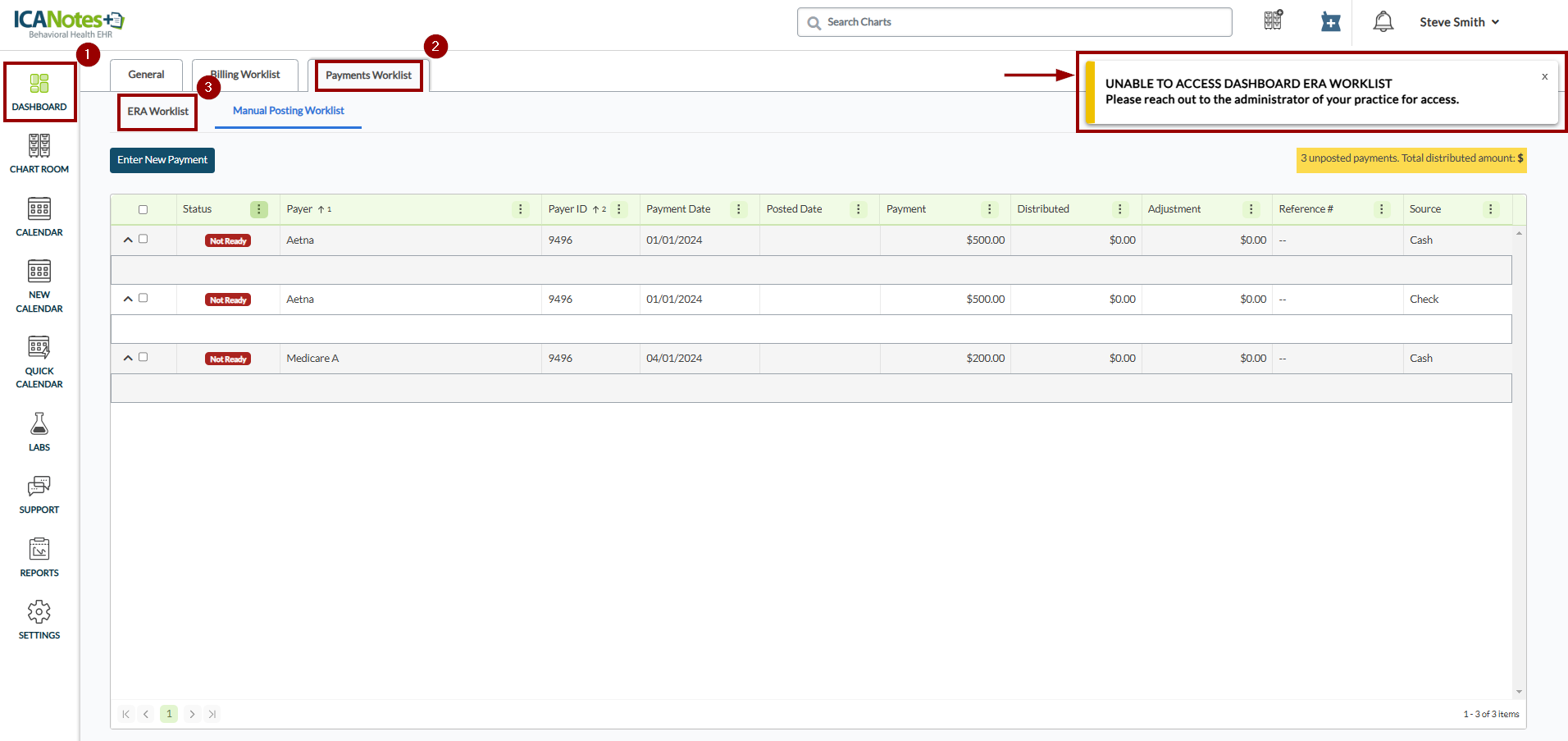 Users without this permission attempting to access the ERA Worklist tab on the Dashboard will receive the following restriction message.