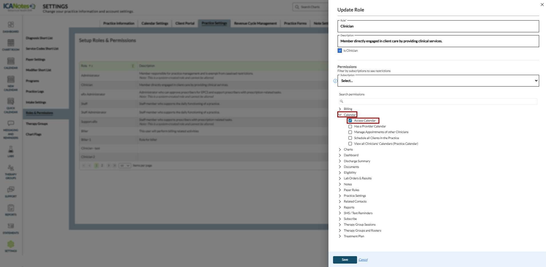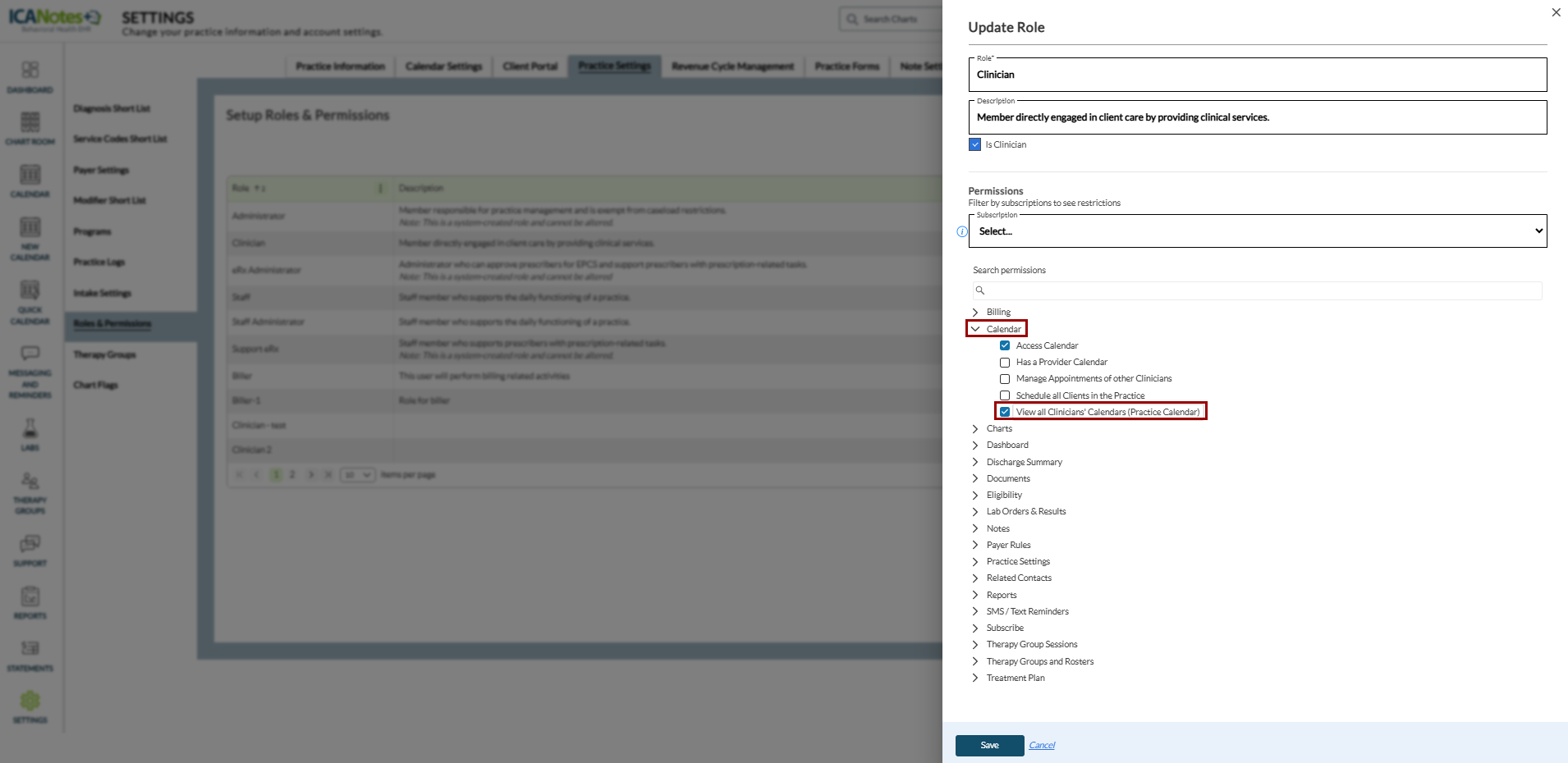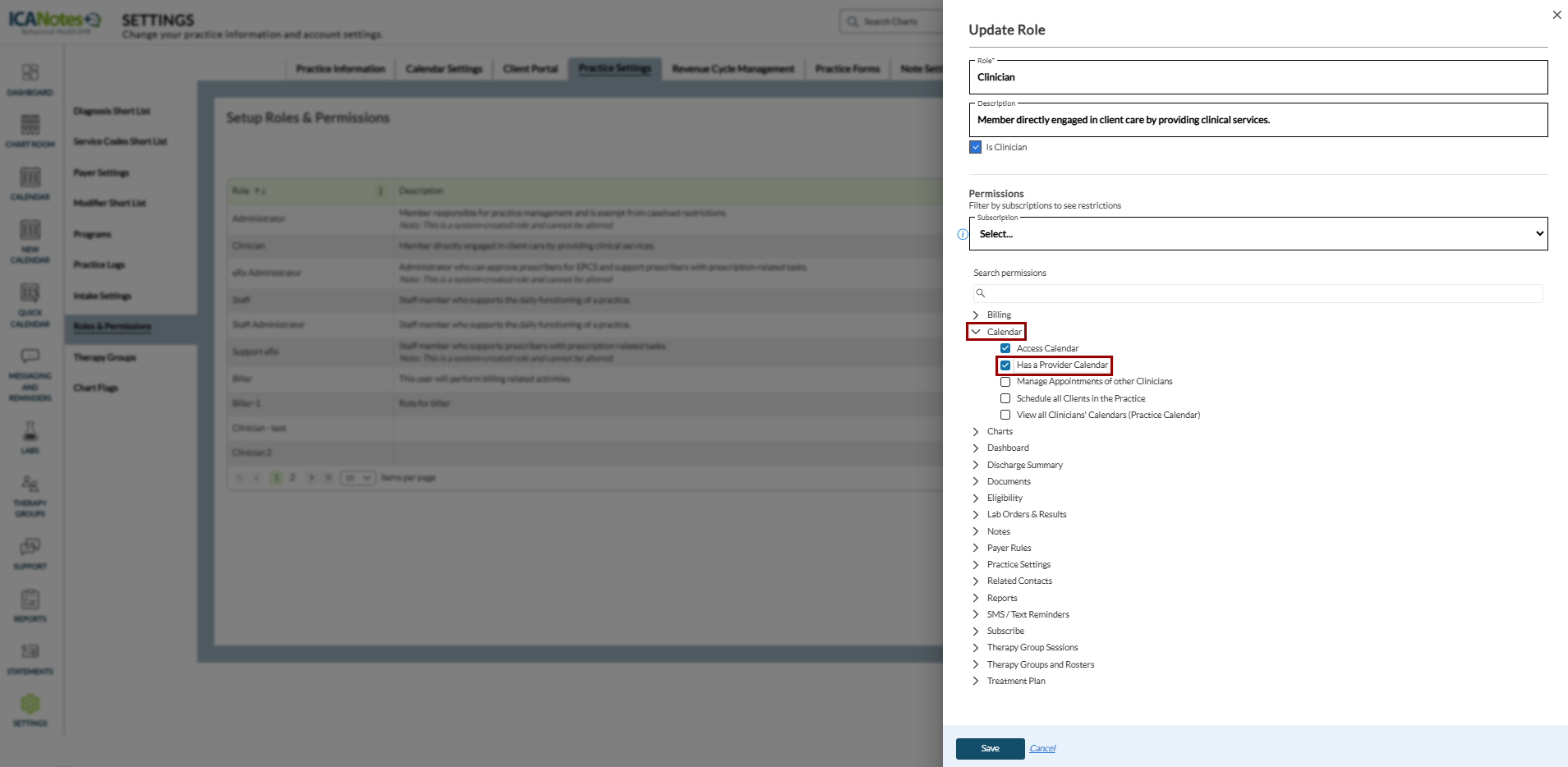Users without this permission will not see their name listed in the Providers section on the calendar.