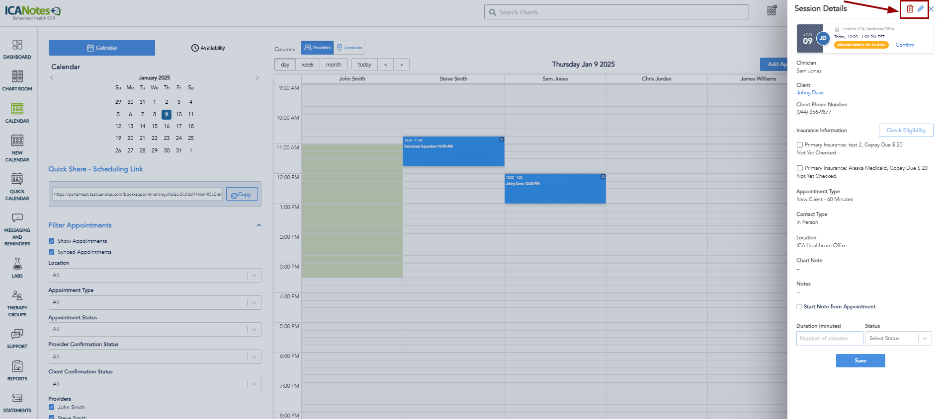 The clinicians attempting to edit or delete appointments of other clinicians will see a restriction message.