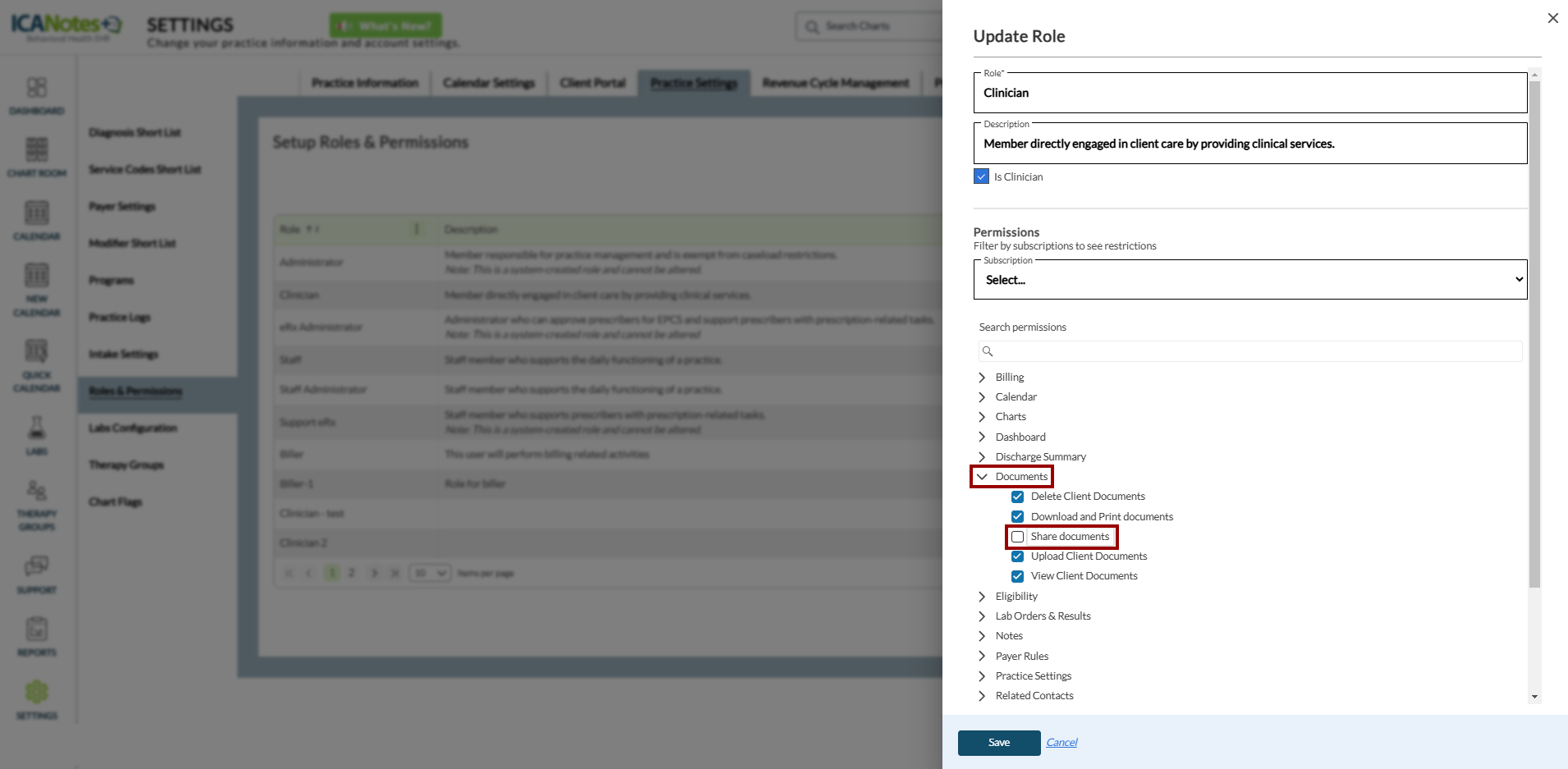 Users without this permission attempting to access the Documents tab will receive the following restriction message.