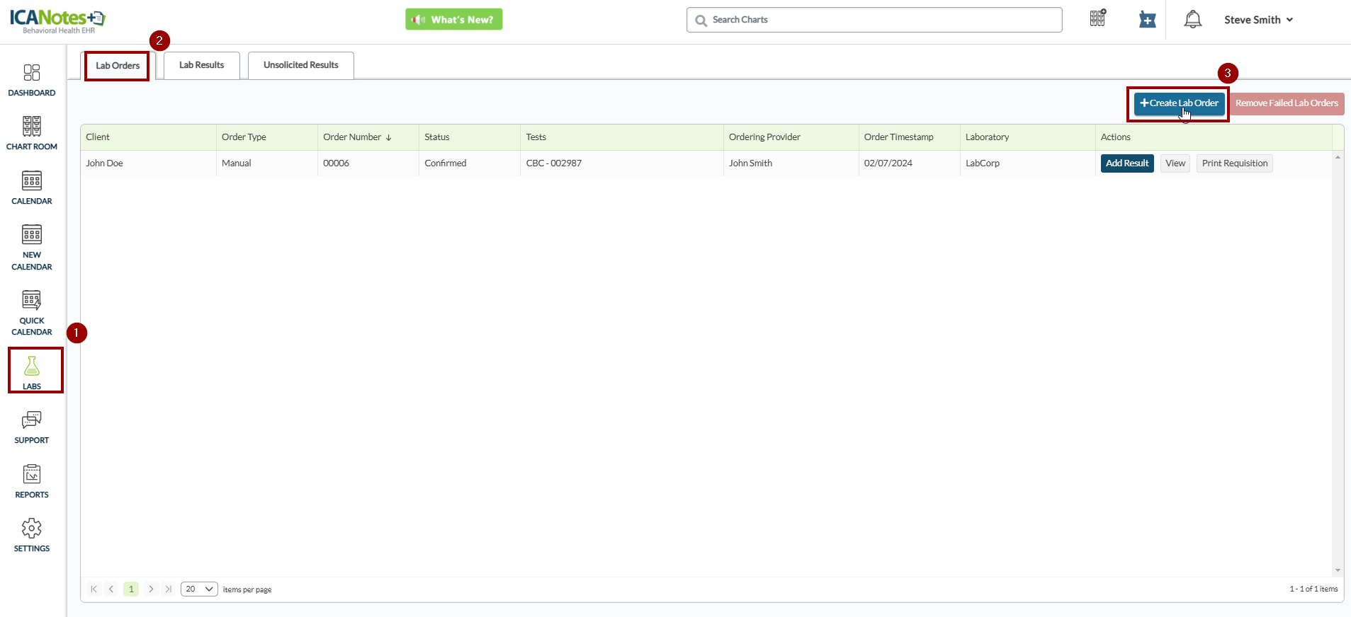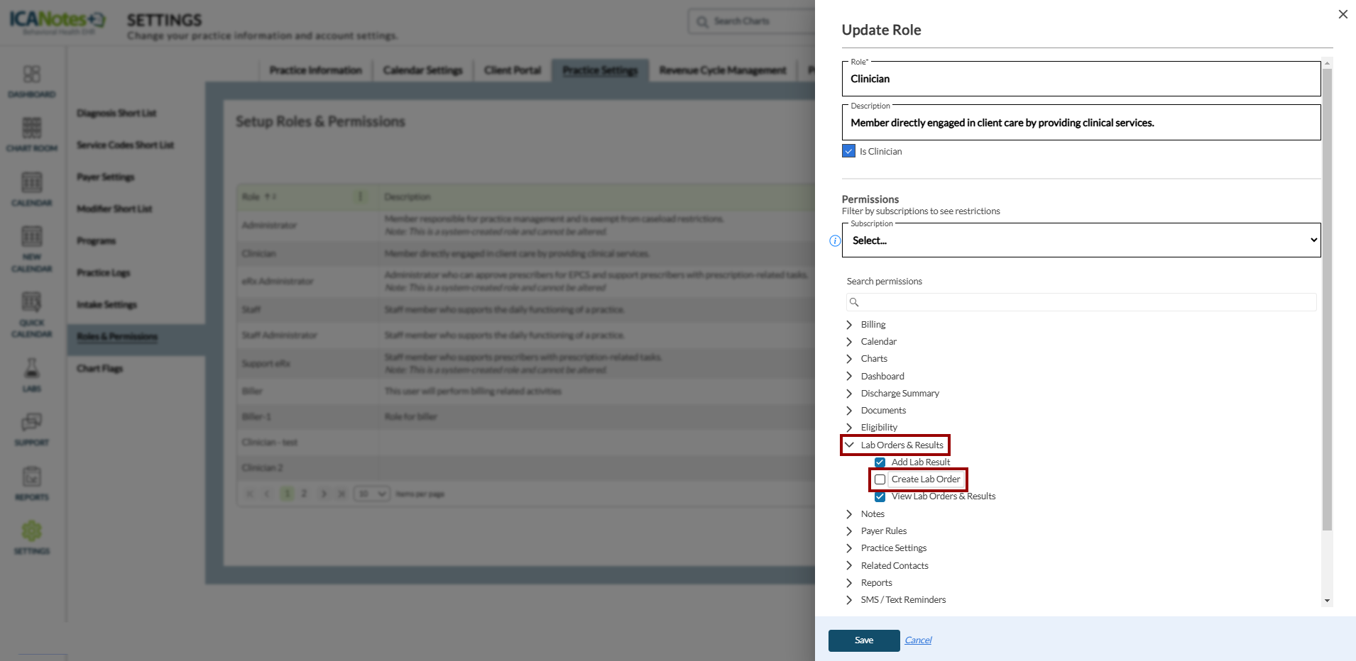 Users without this permission attempting to create lab order will receive the restriction message. Refer to the following screens.