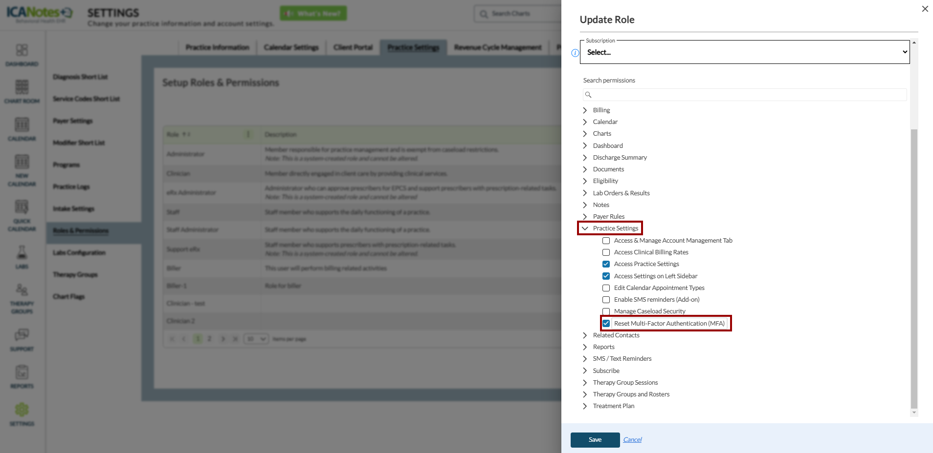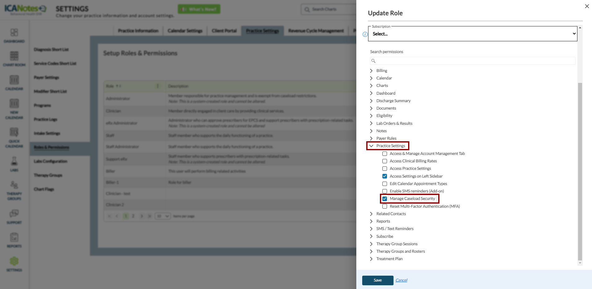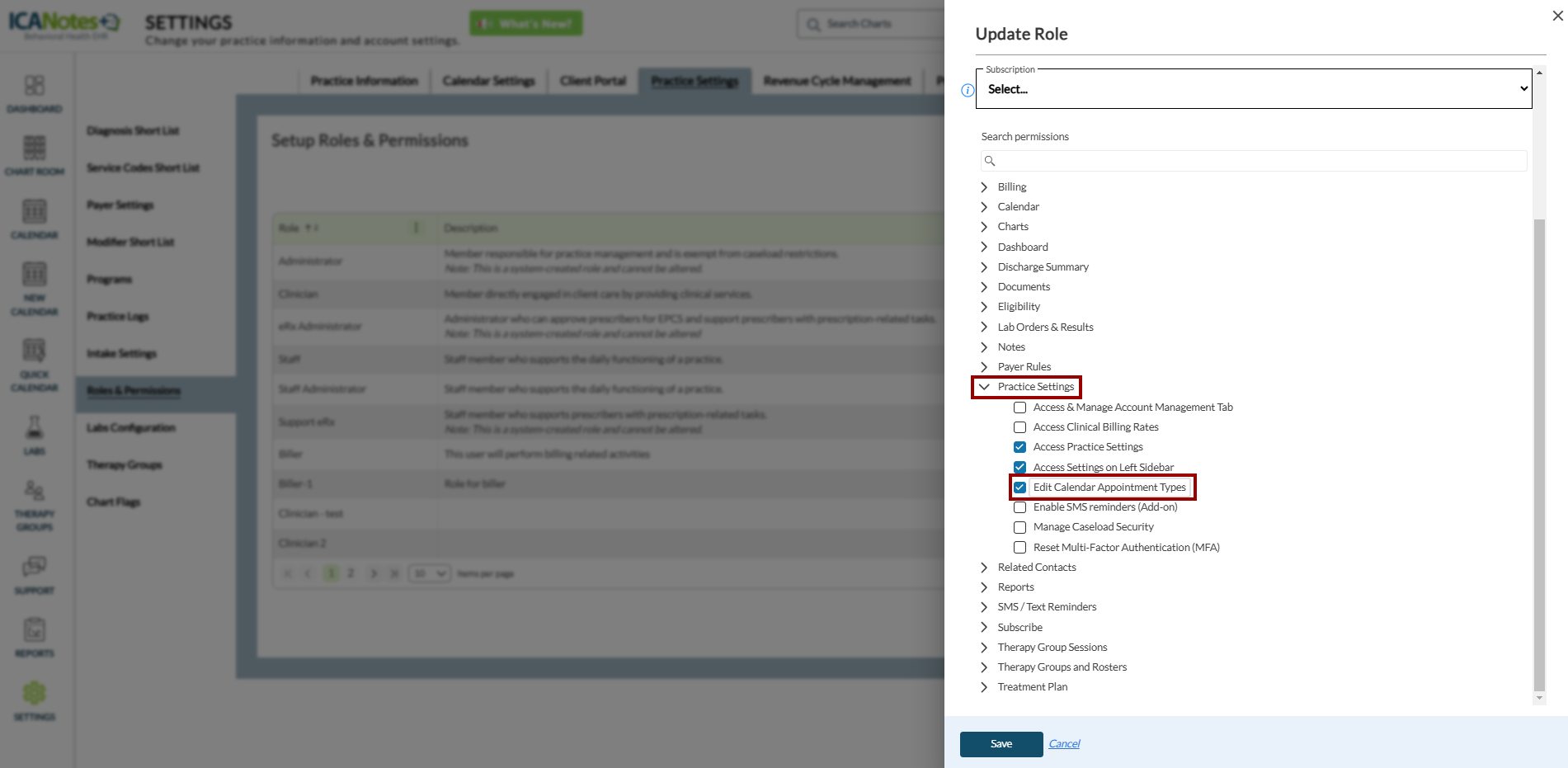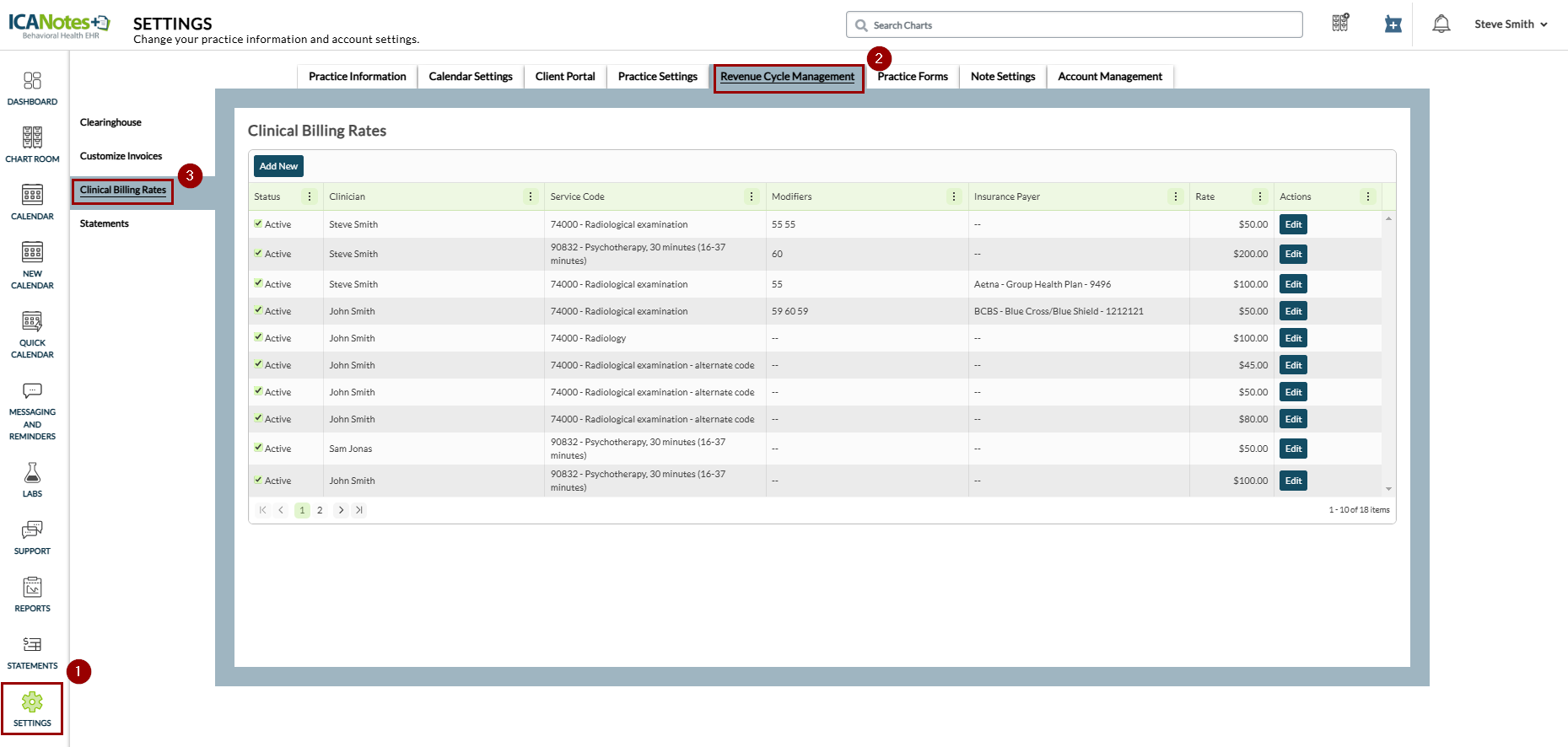 Users without this permission won’t see the Clinical Billing Rates section in Settings > Revenue Cycle Management.