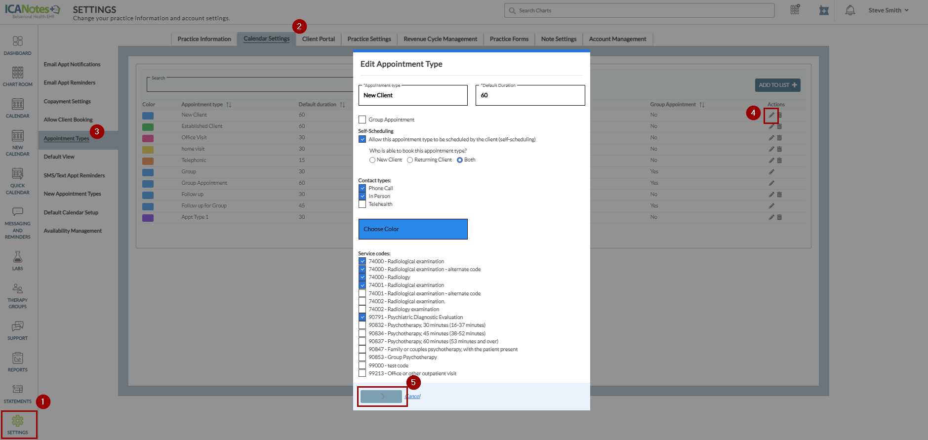 Users without this permission attempting to edit an appointment type from the Settings > Calendar Settings tab will receive a restriction message.