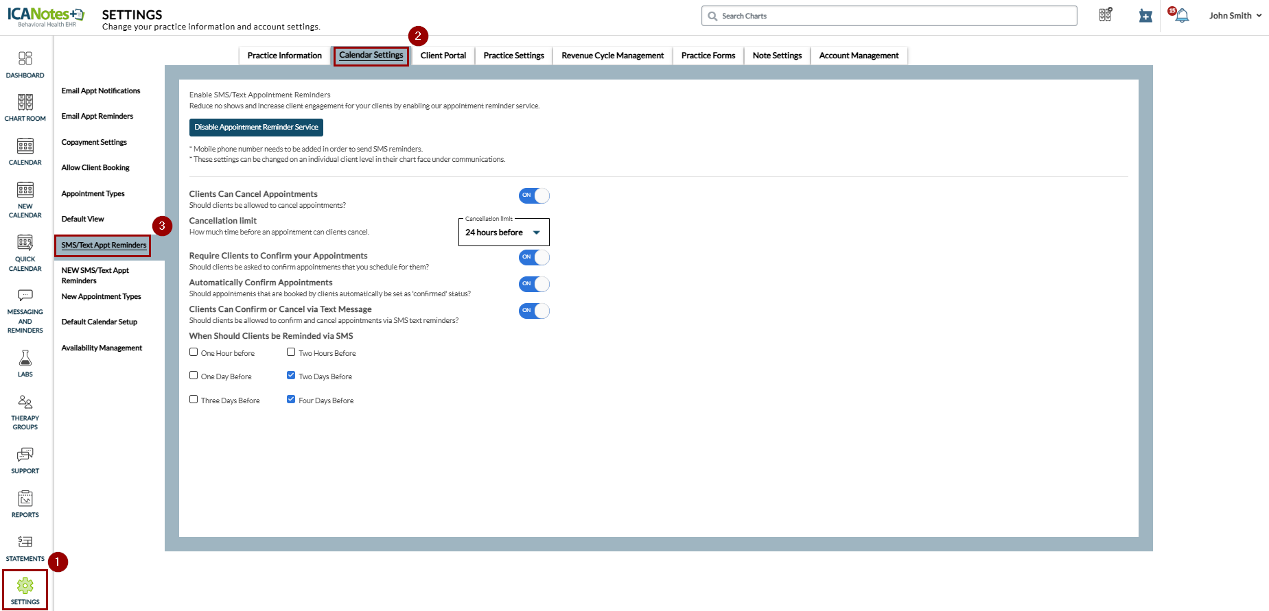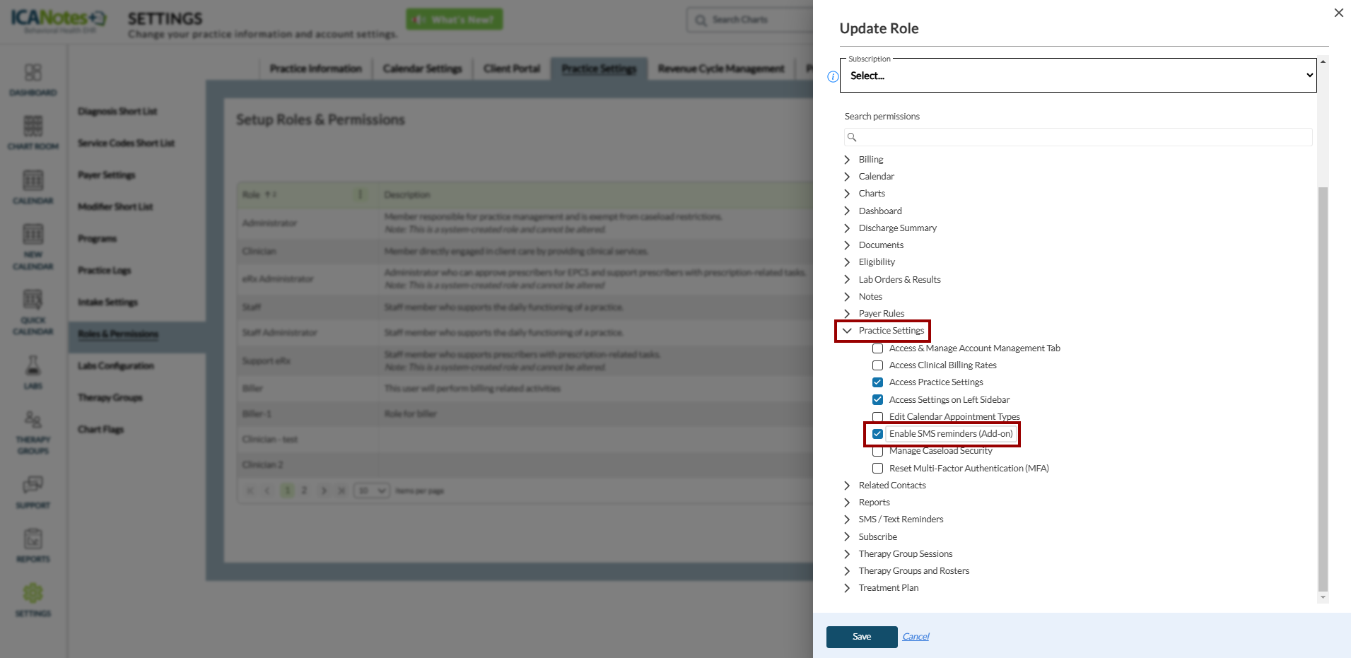 Users without this permission won’t see the SMS/Text Appointment Reminders section in Settings > Calendar Settings.
