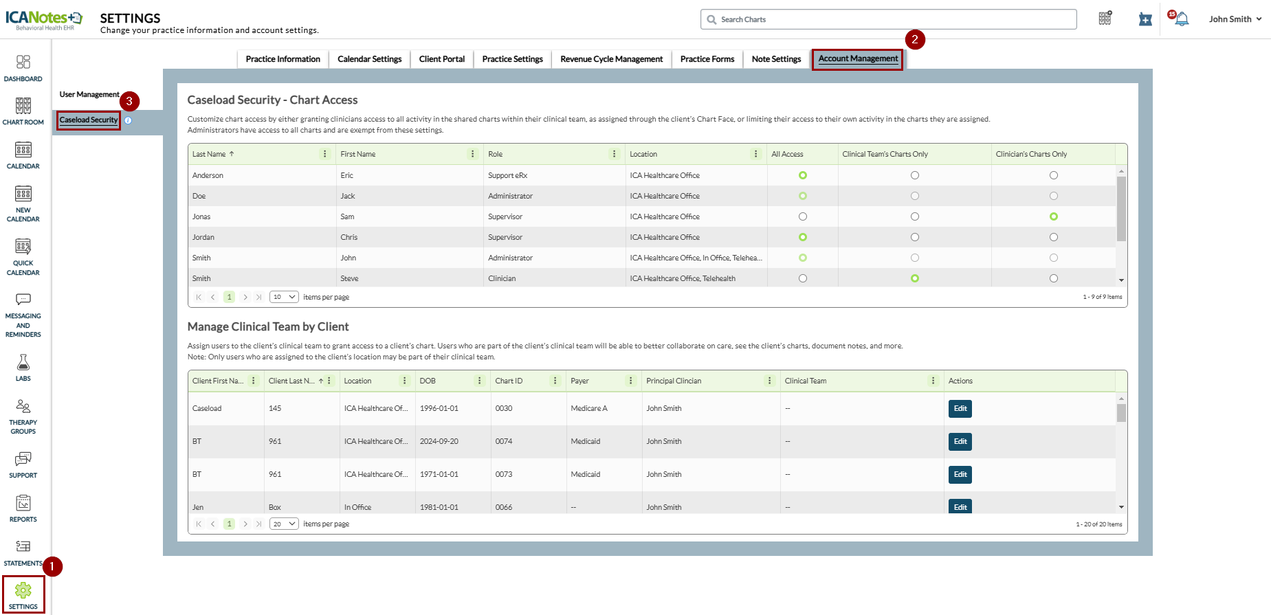 Users without this permission won’t see the Caseload Security section in Settings > Account Management.
