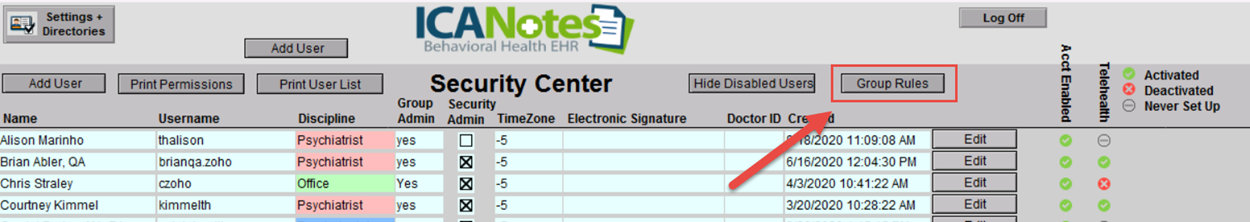 2. After entering the Security Center, click the Group Rules button on the upper right.