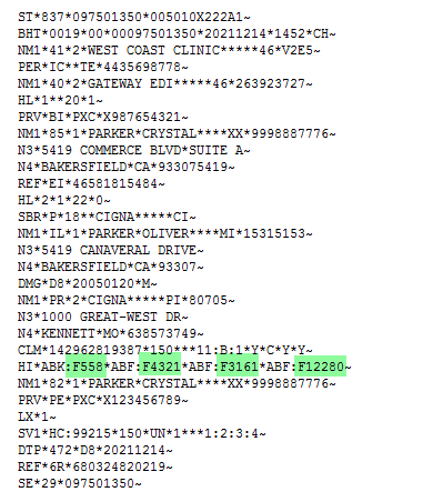 Likewise the ANSI for the electronic claim includes only the appropriate diagnosis codes: