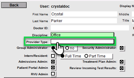 Security Administrators will click into the dropdown field to set the Provider Type: