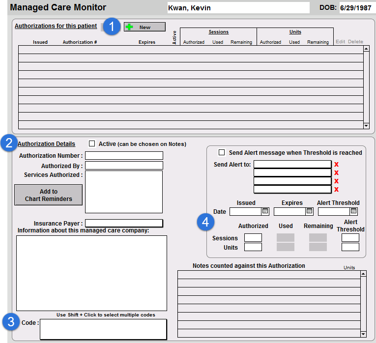 When a note is created for the patient with an active authorization and the specified Code is entered into the Service Code work area, the Managed Care Authorization number will populate automatically for you.