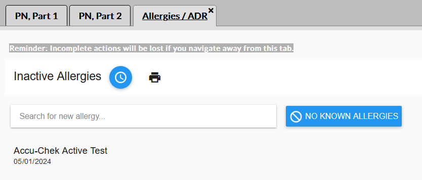 On the Allergies / ADR tab, click the icon at the top and select "Inactive" from the list.