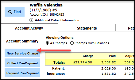 button to create the service charge.