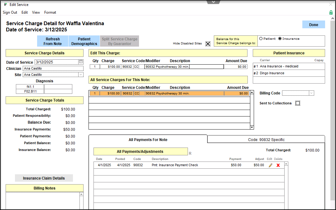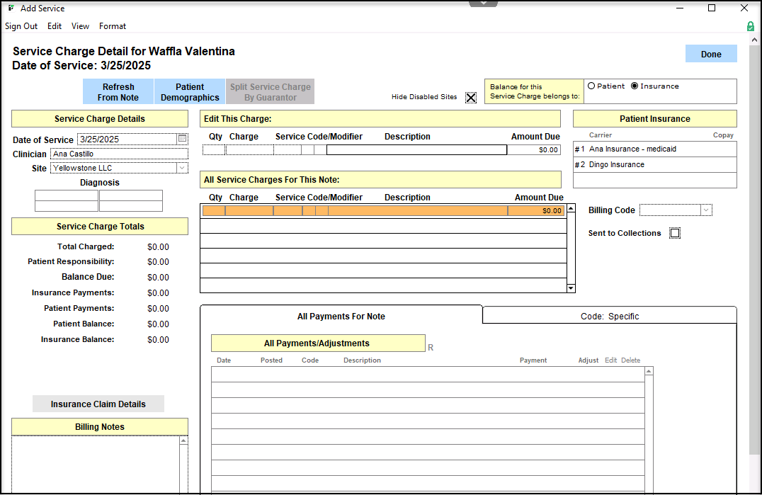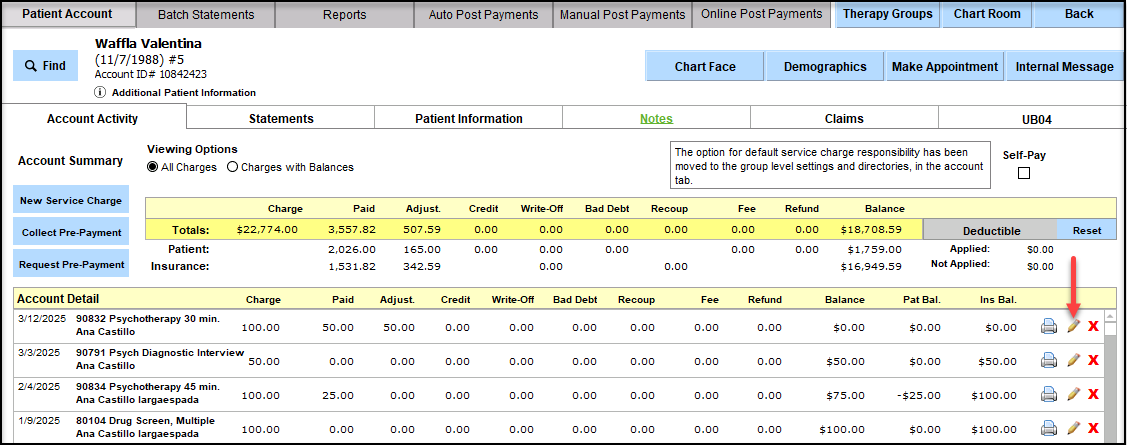 Editing a Service Charge