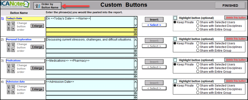 Sections How To Create Custom Buttons Where To Find All Custom Buttons Learn how to create your own custom buttons in ICANotes which will help improve your documentation and efficiency. How To Create Custom Buttons 1. All over ICANotes Custom Buttons ...