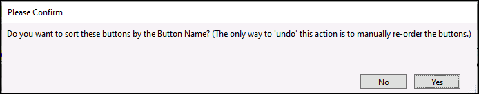 3. You will receive this popup warning. Click Yes to proceed. Doing so will sort your personal custom buttons in that list in alphabetic order.