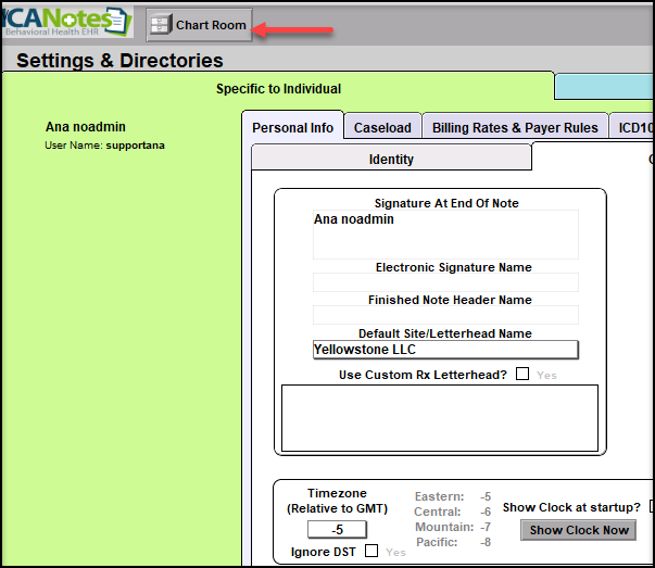 At this point the changes have been completed. For the changes to reflect on the users notes, please have the user log off using the pink log off button in the chart room. Once logged back into ICANotes the correct time will reflect on the notes.