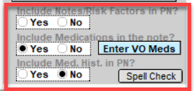 - Enter VO Meds: Patient Medications are listed by clicking the Enter VO Meds button. The patient medications are brought forward from the previous note and the date of the most recent change is recorded.