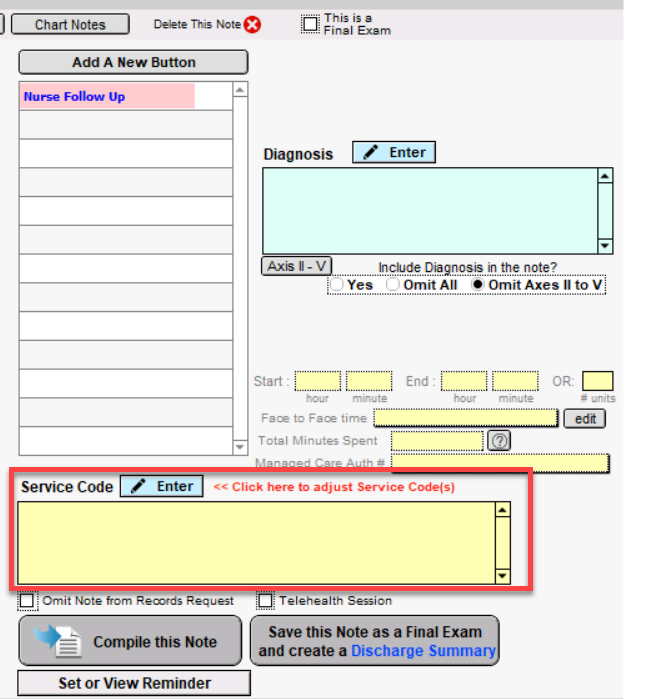 It is VERY IMPORTANT that you compile your Progress Note to save any changes you made to it. You may always compile your note to save it, then come back and work on it later. When ready, finish the note by clicking the Compile this Note button.