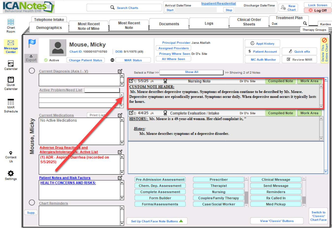6- Finding the Compiled Note, you will be able to find the compiled note from the Chart Face in the notes section.