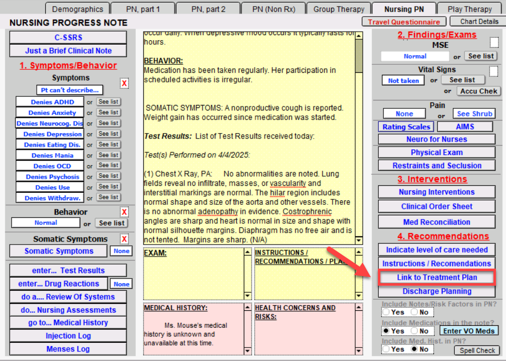 If you have a treatment plan created already you can link the treatment plan to the progress note. Click on the Link to Treatment Plan button. Choose the treatment plan under "This Note references Treatment Plan." Select the problem under "Select Problem."