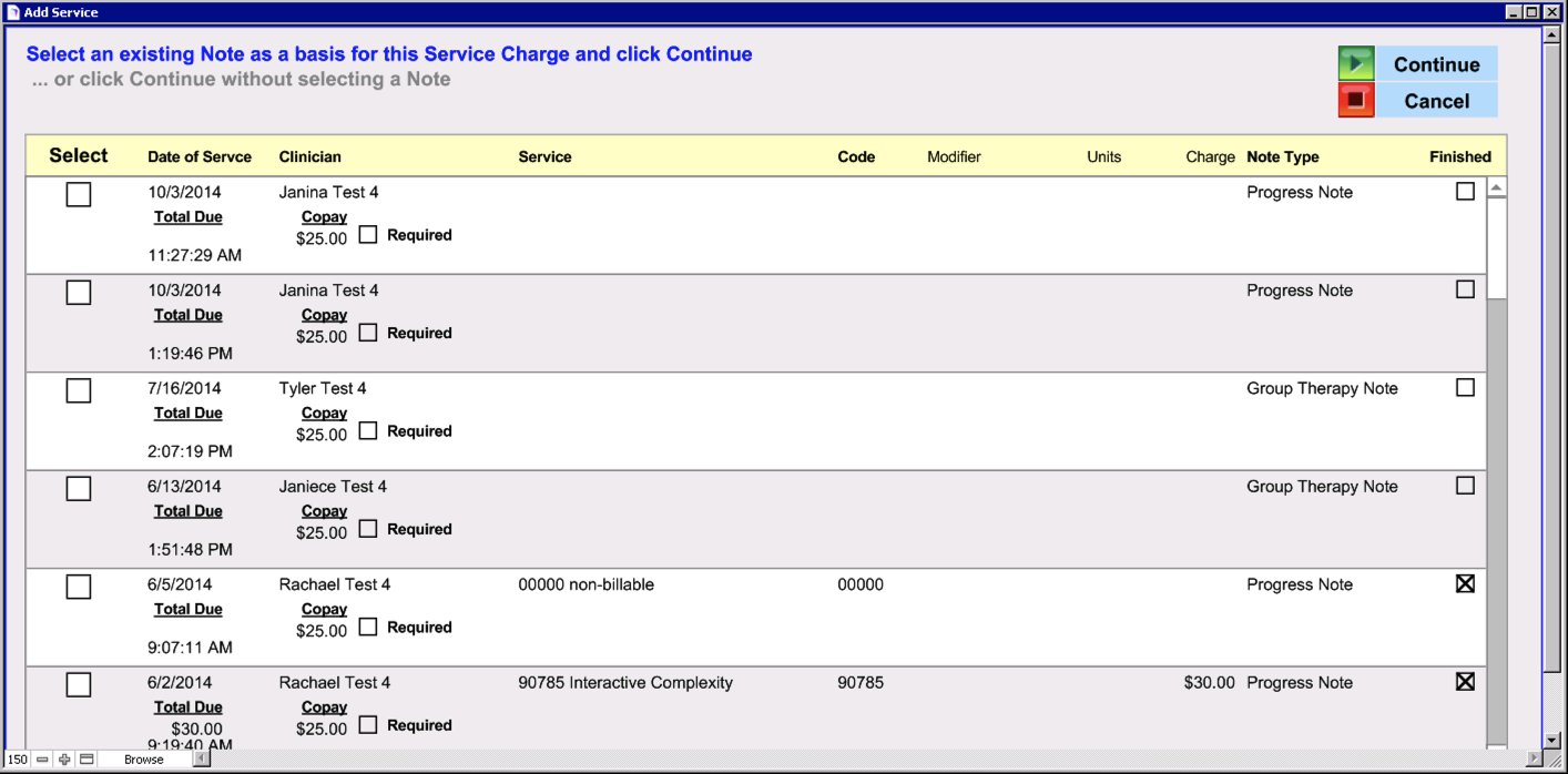 Sections Adding a Service Charge Editing a Service Charge Adding a Service Charge If the charge has not been created yet, click the button to create the service charge. On the Add Service window, finished notes are indicated in the right column (see ...