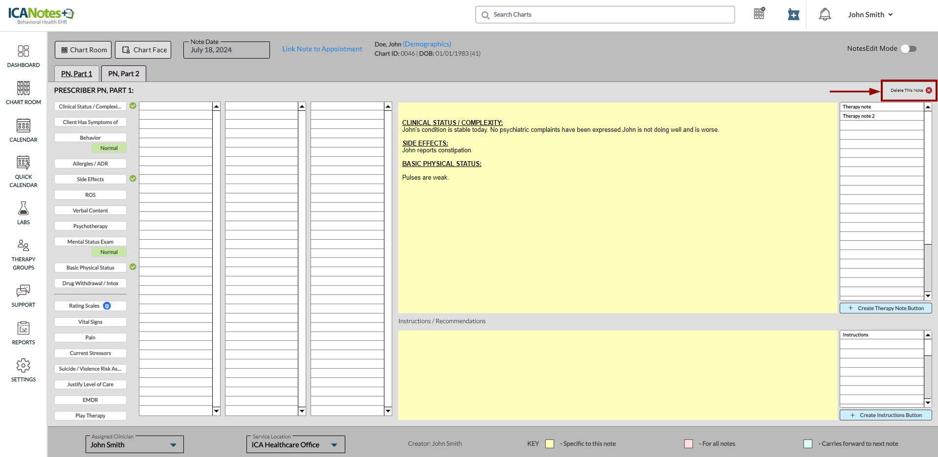 In ICANotes+, you can delete notes that you have created for clients. To delete a note, you must first access the client’s Work Area.