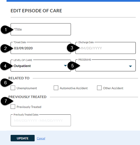 (3) Discharge Date - Enter a Discharge Date to close the episode of care on the chart.