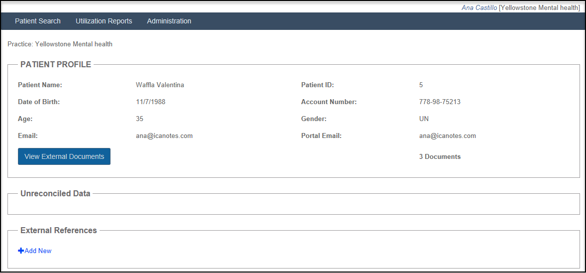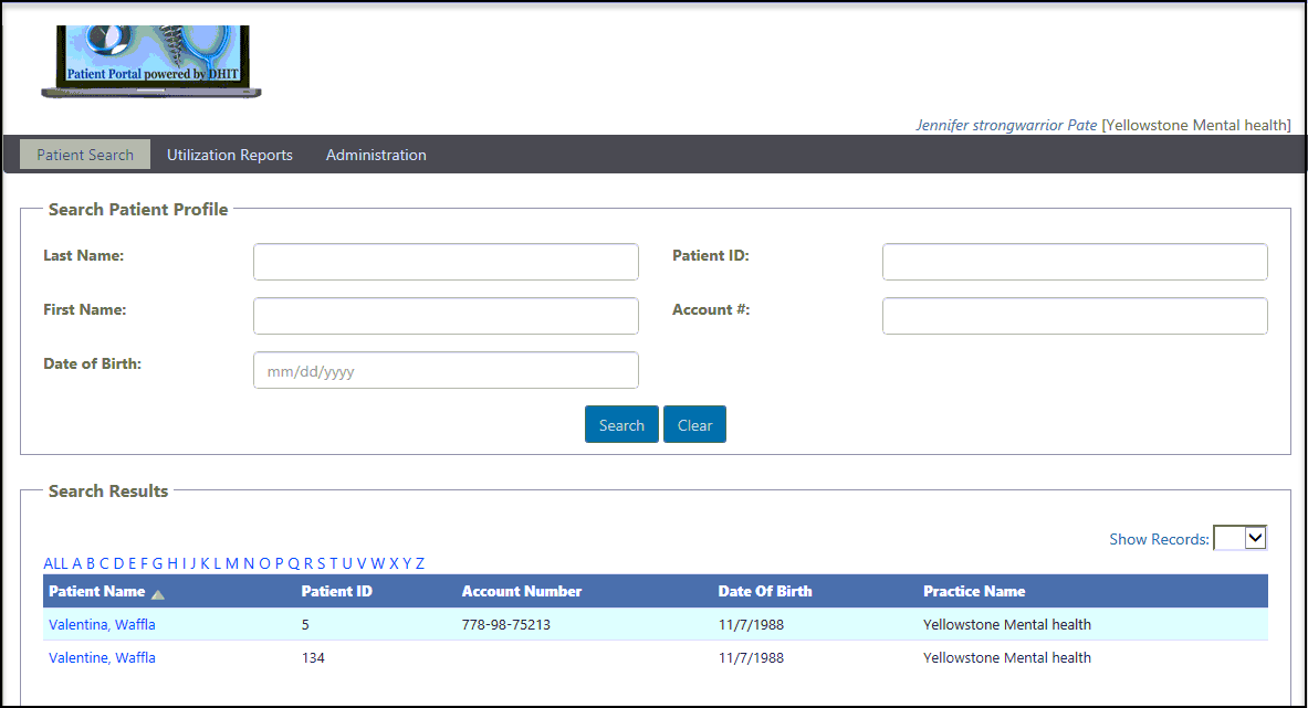 A Clinician will be able to see more patient information since their NPI is link to their account. They will be able to click on the patient's name, see documents, external document if available.