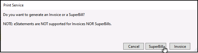 3. When the popup Print Service window populates, click SuperBill.