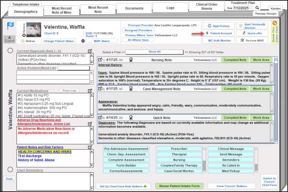 1. To generate a superbill for a patient visit, simply go to the patient's Chart Face and click on the Patient account button.