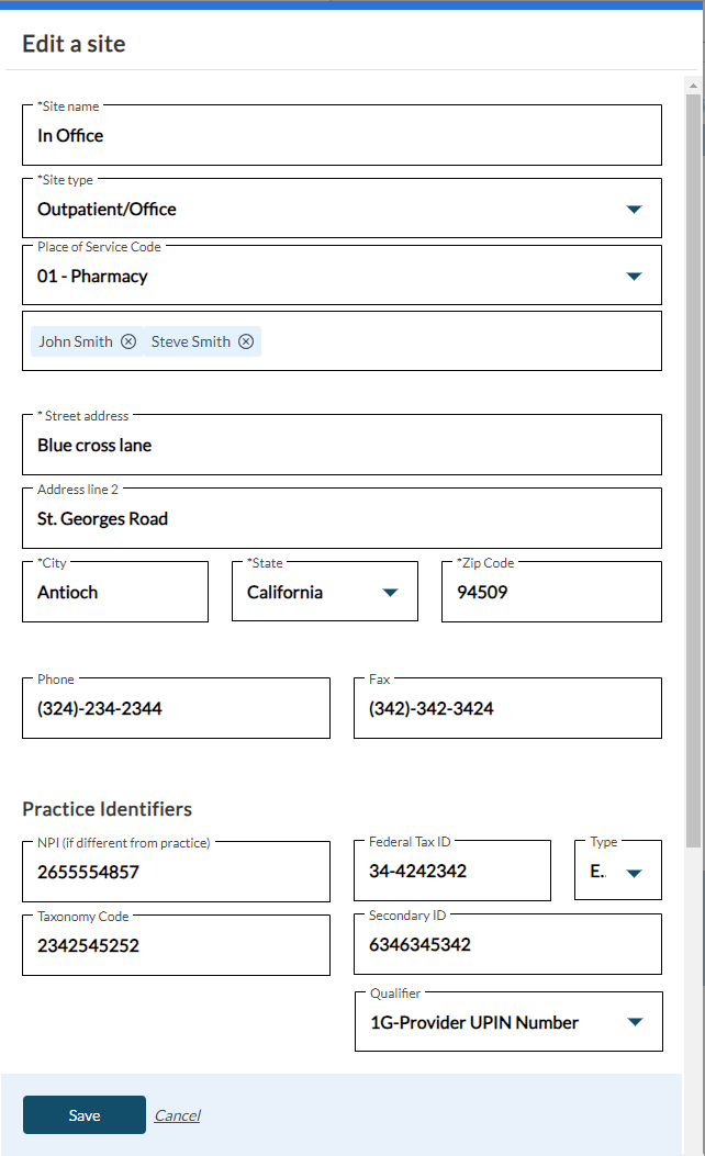 The site’s previously entered details will appear on a screen. Make the necessary changes and click Save.