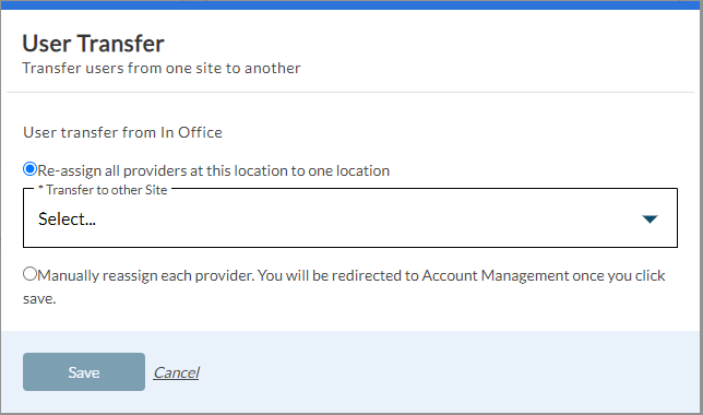 Once you attempt to deactivate the site, you’ll be prompted to transfer any users associated with it. You can either assign them to another site or handle the transfer manually via the Account Management screen.