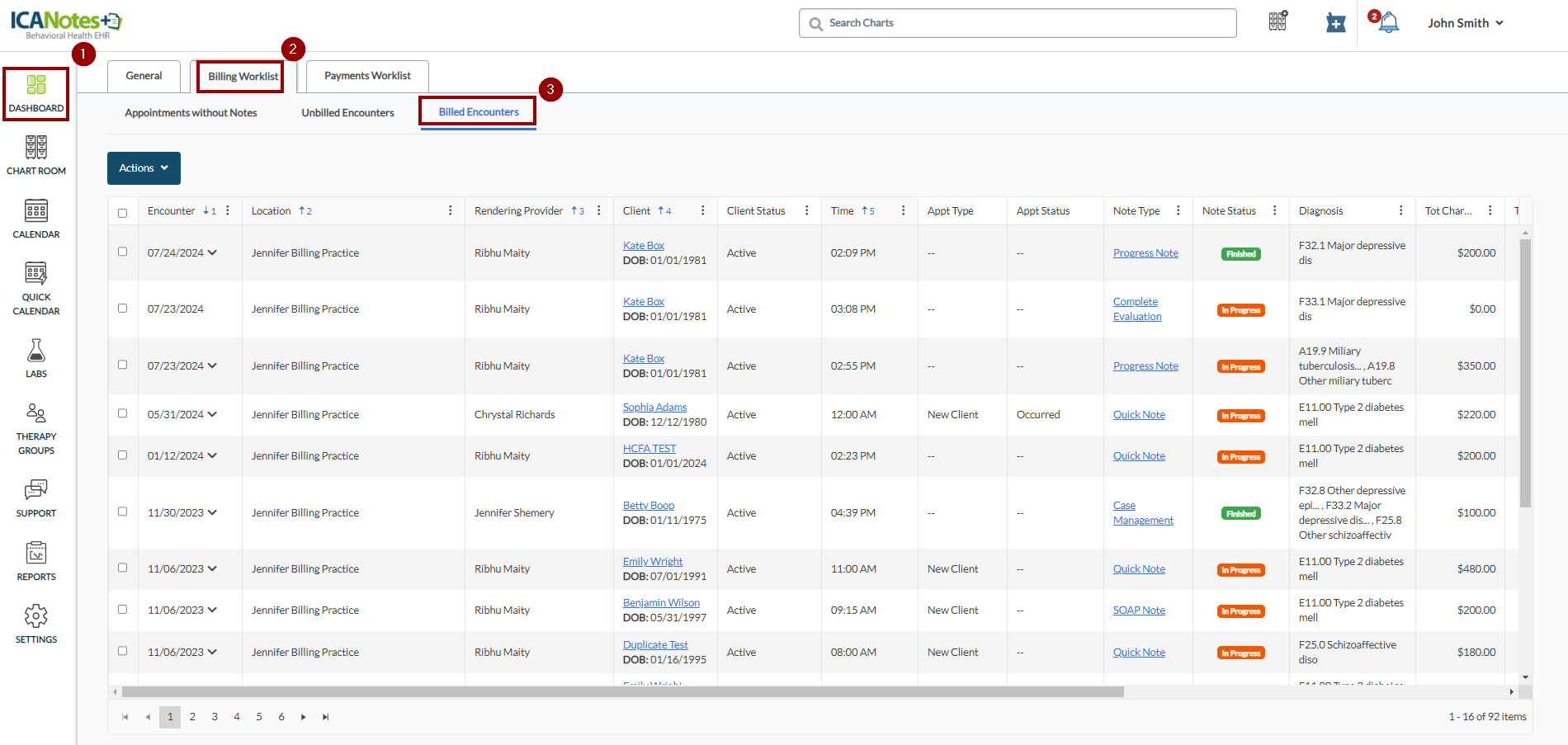 Navigate to Dashboard > Billing Worklist > Billed Encounters tab to see that all the encounters have been moved to the Billed Encounters tab.