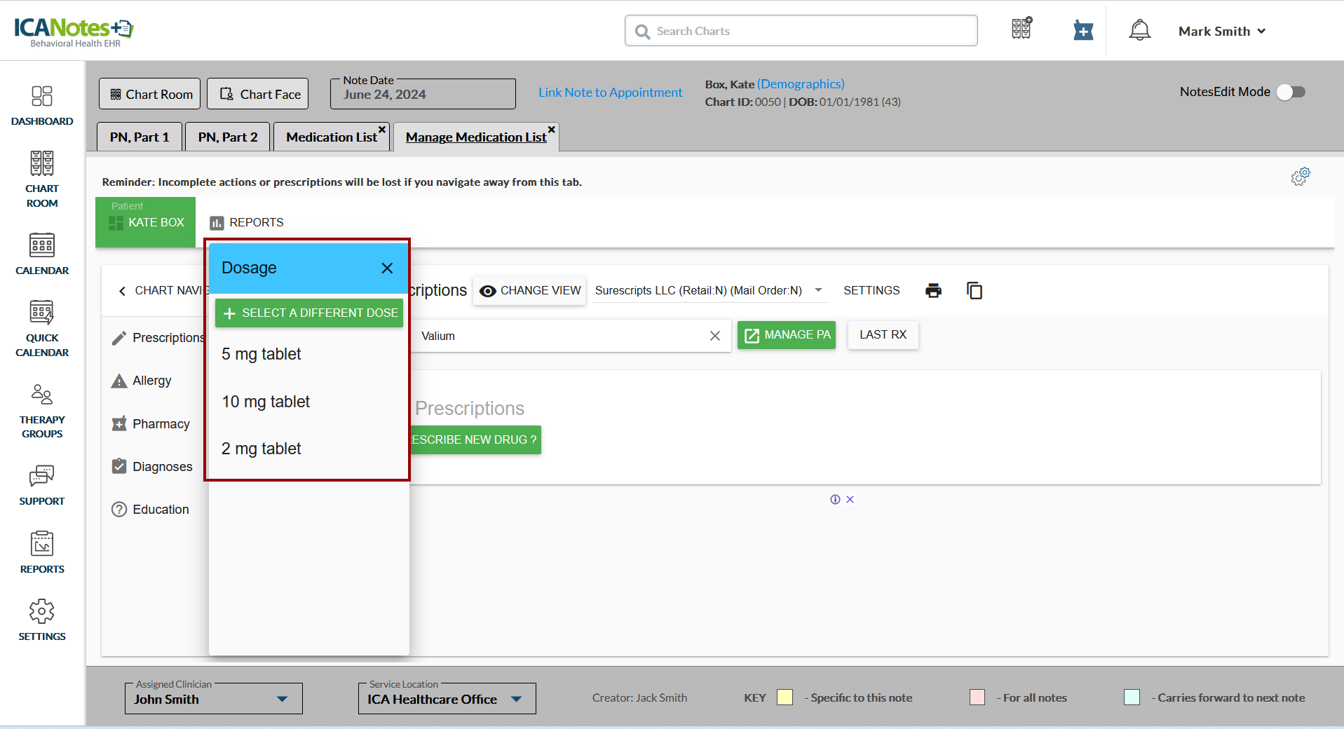 The part-time/full-time clinicians must have a DEA number recorded within ICANotes+.
