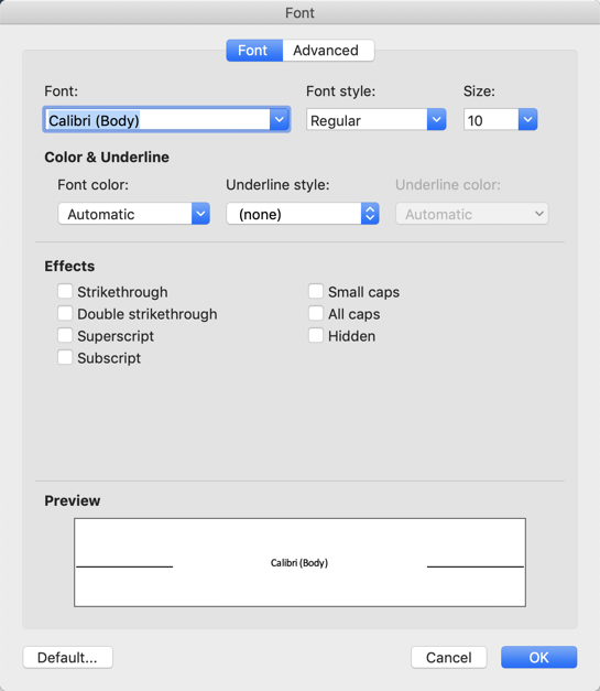 7. If the entire information had not fit into the label, I can go back to the Mailings and then Labels in the window that shows the labels. Click on the button. In the Font window you can adjust the Font, Font style, Size, and much more. I found that Calibri (Body), Regular, Size 10 fit into the box well of the selected stickers I had chosen for this demonstration. When done with the font changes, click the