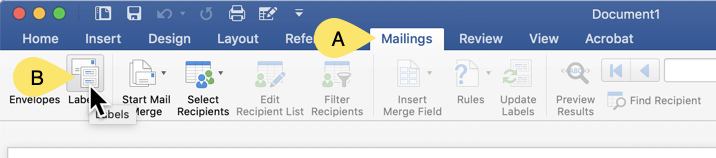 1. Once MS Word is open, go to the Mailing tab and click the Labels button.