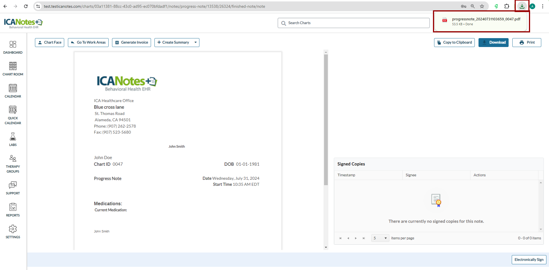 This knowledge base article guides you on printing and downloading the notes in ICANotes+. You can print or download any of the following notes after compiling them.