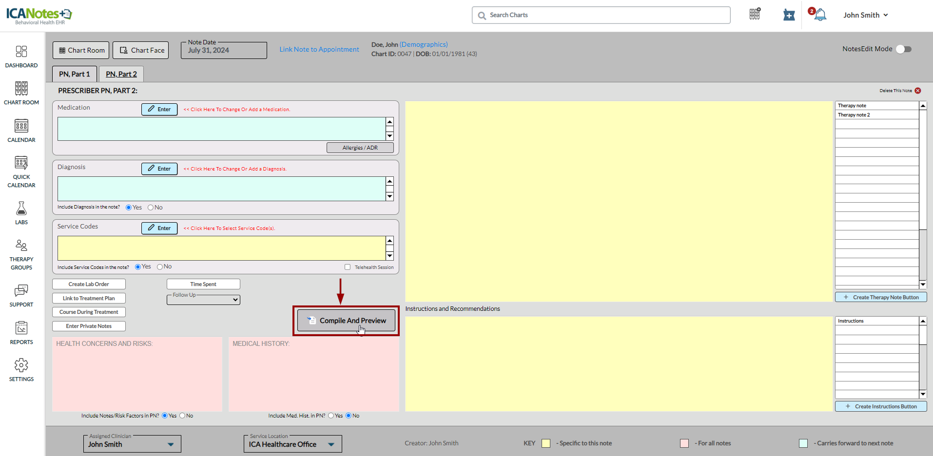 Record the required details in the note and then click the Compile and Preview tab as shown below: