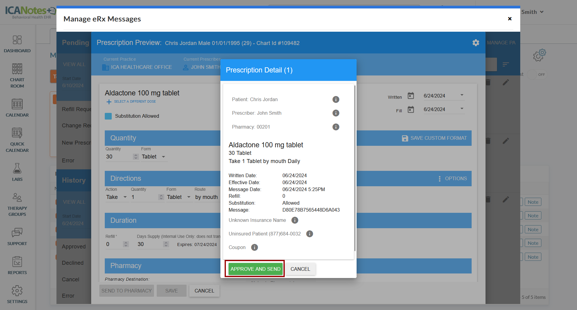 7. Review medication details and click the Approve and Send button.