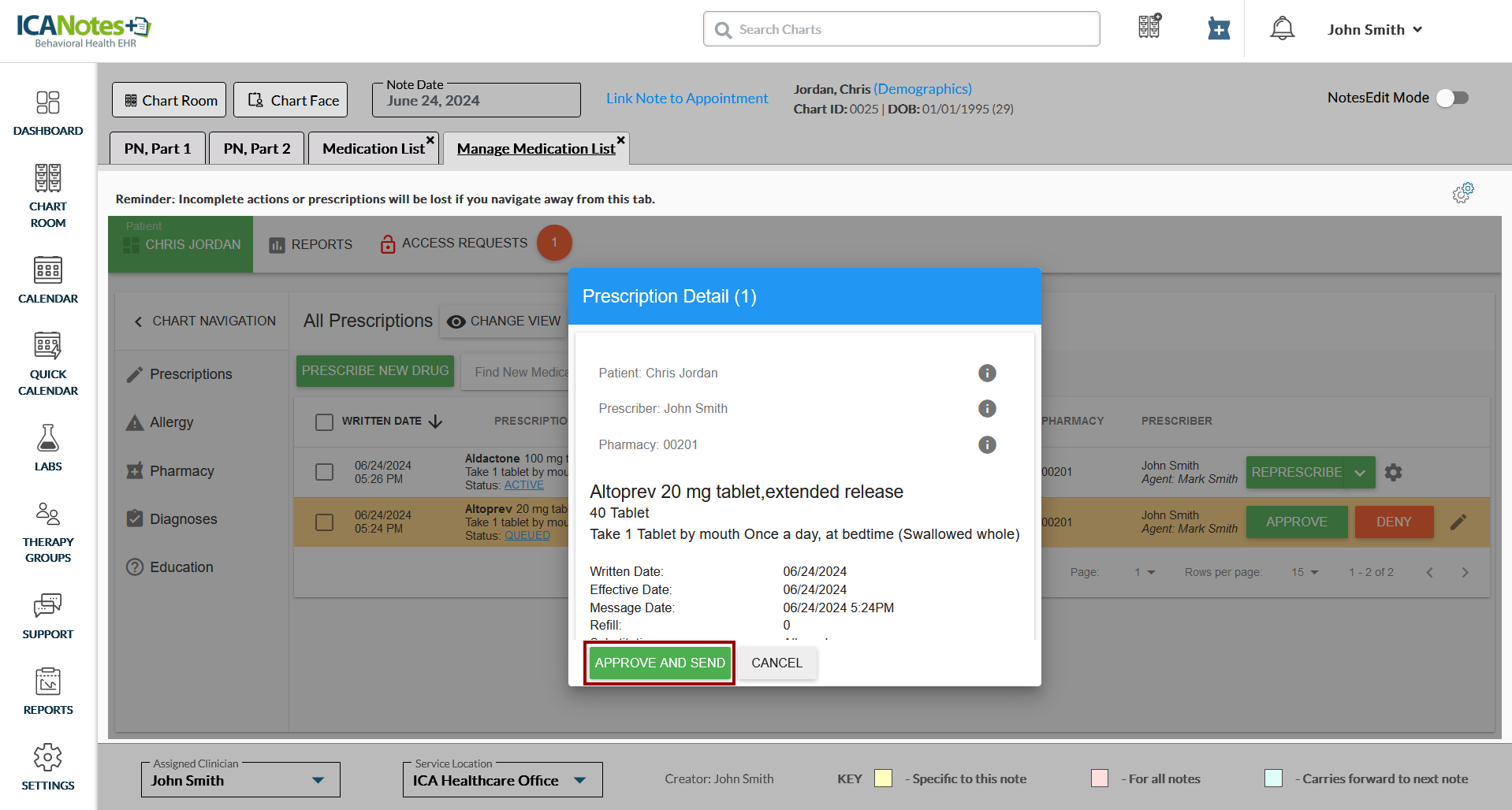 4. Review medication details and click the Approve and Send button.