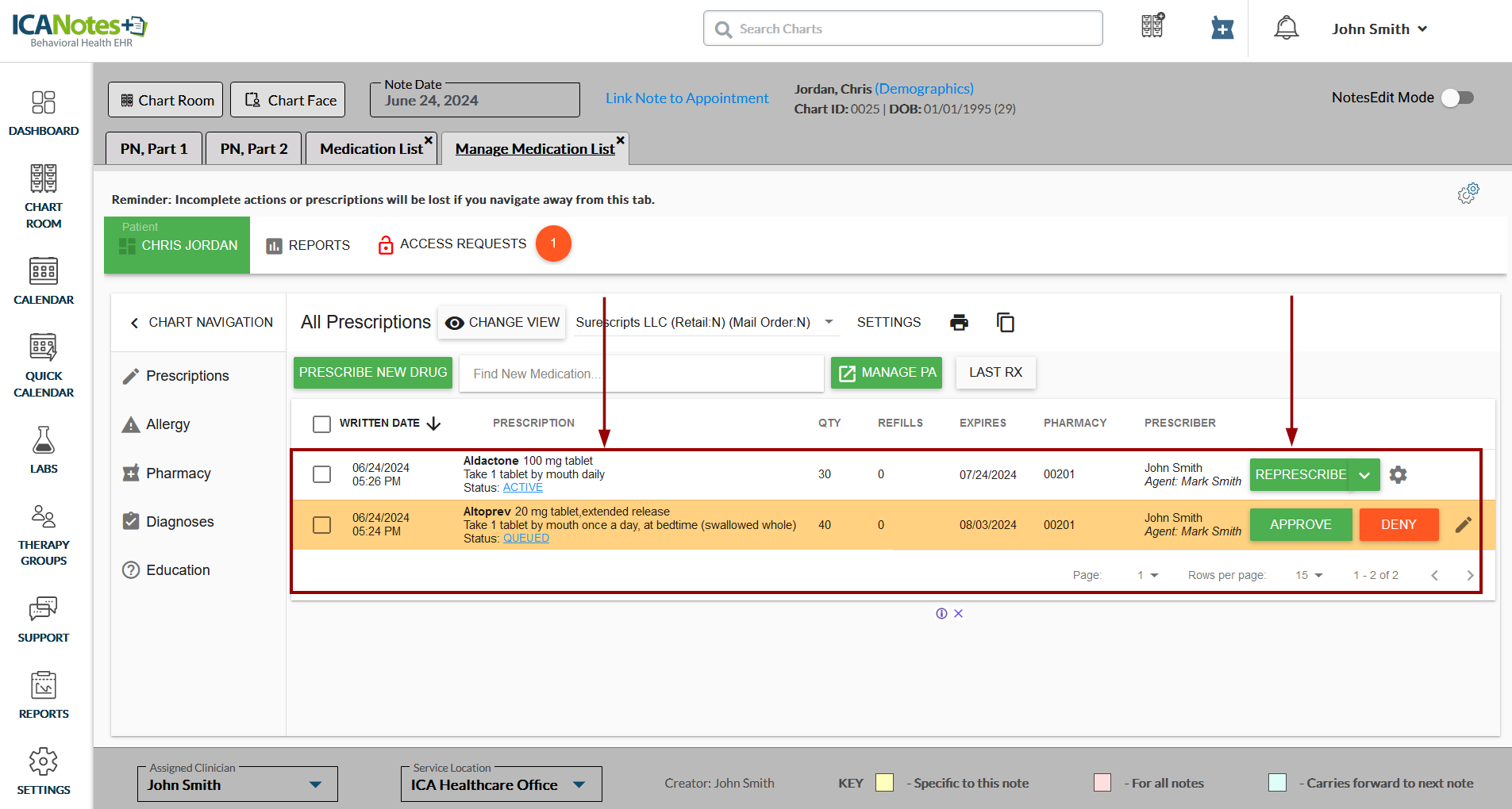 5. Click the Approve button to approve and send medication to the pharmacy.