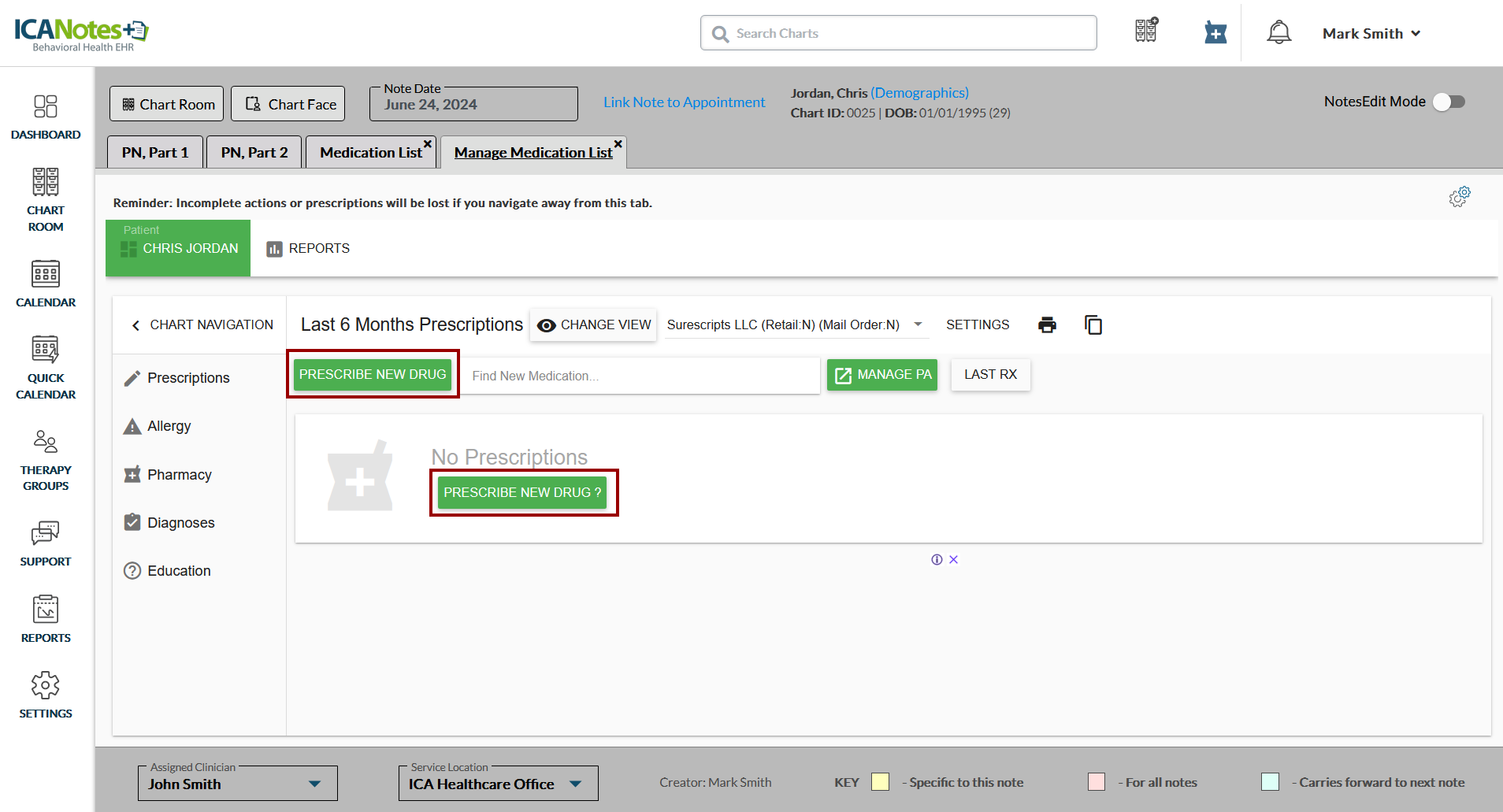 Click the Prescribe New Drug button as highlighted in the screen below: