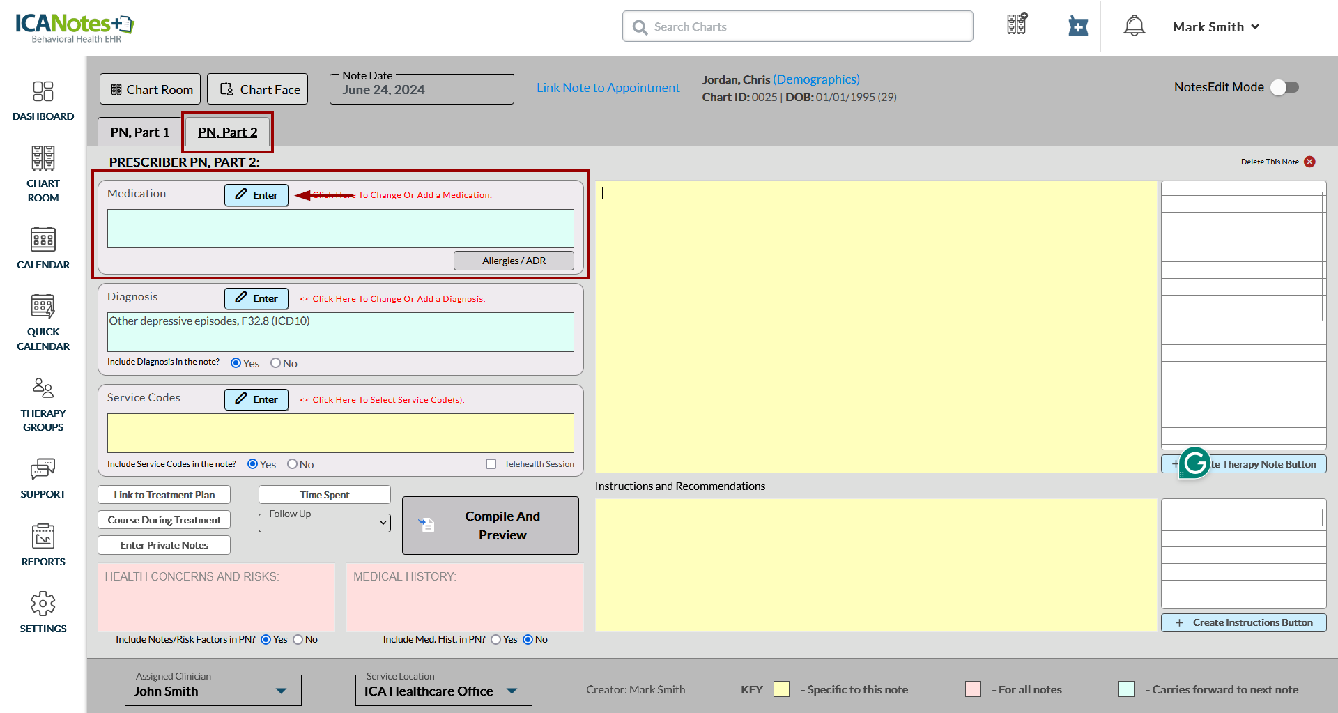 1. Log on with the clinician role with a part-time/full-time plan type.